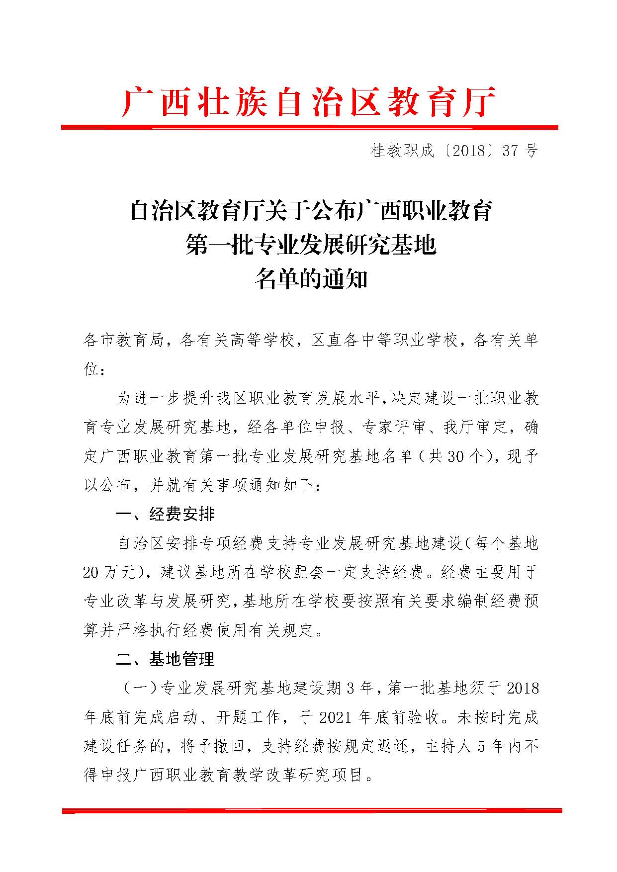 关于公布广西职业教育第一批专业发展研究基地名单的通知