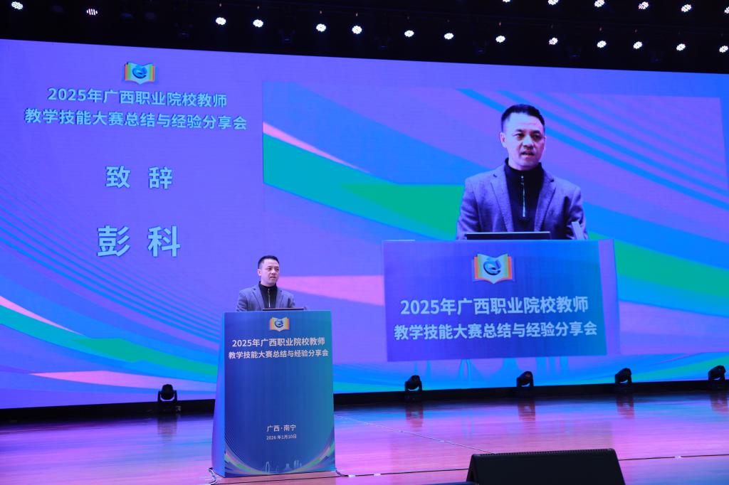 本次总结与经验分享会会议既是对2025年广西职业院校教师教学技能大赛成果的集中检阅,更是对广西职业教育未来发展的积极谋划。站在“十五五”开局的新起点,广西职业院校教师教学技能大赛将继续秉持“以赛促教、以赛促学、以赛促改、以赛促建”的宗旨,持续推动教师专业成长与教学改革创新,为加快构建现代职业教育体系、培养更多高素质技术技能人才、赋能广西经济社会高质量发展注入强劲动力。