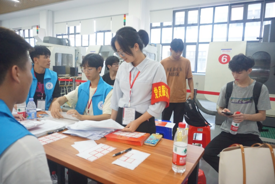 熙熙攘攘的迎新人群,党员志愿者们手臂上亮眼的袖章,忙碌的身影和热情的笑容,展示了每一位党员高度的责任感和昂扬的精神面貌。校门口、笃行楼前协助新生搬运行李与引导新生有序前往报到地点,笃行楼内按专业分设服务岗位向新生和家长提供贴心、全面的咨询服务,让新生感受到了党的关怀和温暖。