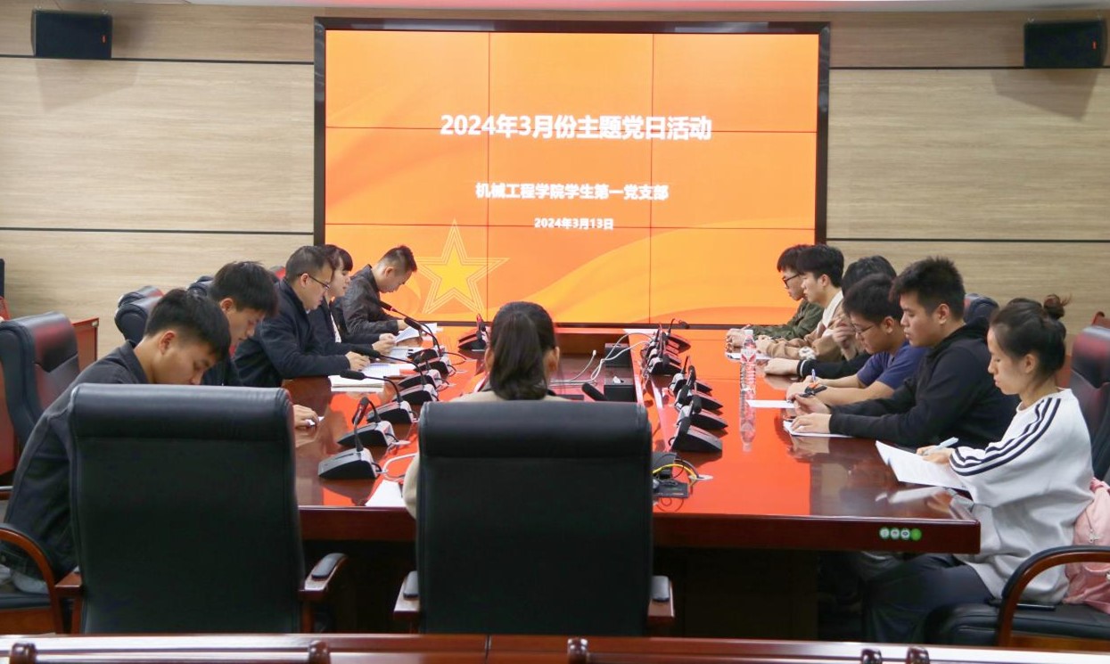 3月13日下午,机械工程学院学生第一党支部在笃行楼第507会议室开展主题党日活动,出席本次活动的人员有机械工程学院党委副书记文小满、机械工程学院学生第一党支部全体党员、在校入党积极分子。