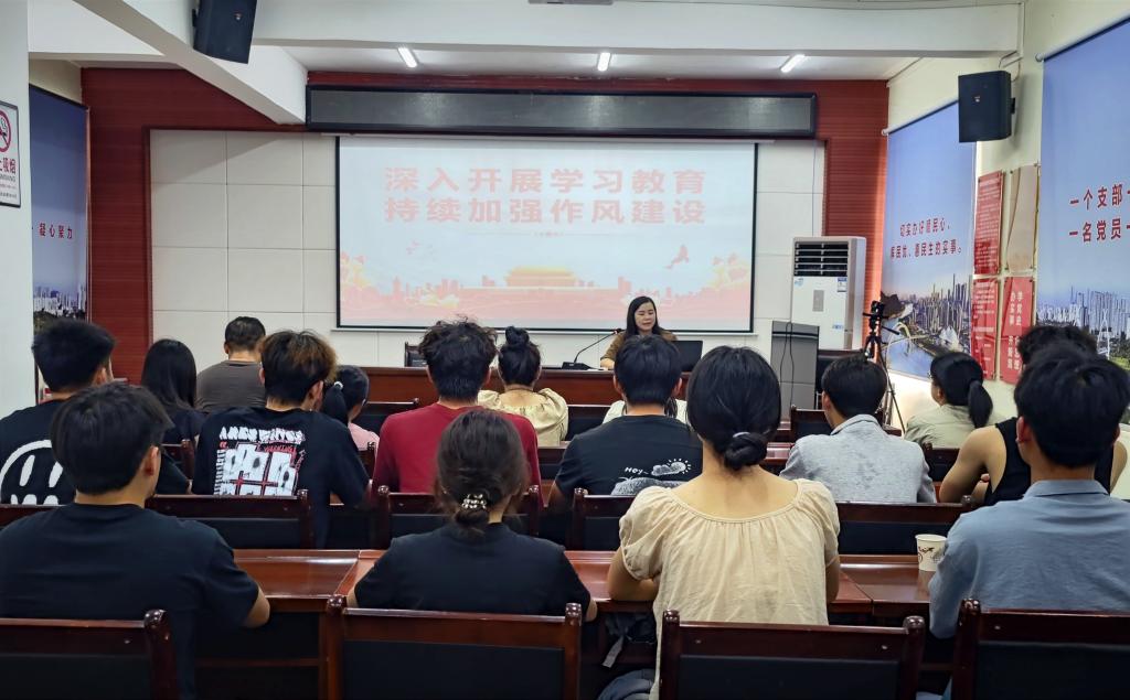 活动伊始,学生第一党支部书记黄姣姣同志以“深入开展学习教育,持续加强作风建设”为主题,对中央八项规定精神进行了全面且深入的领学,并结合实际案例,深入剖析了违反规定精神的具体表现及严重后果。在领学过程中,黄姣姣同志着重强调:“中央八项规定精神是全面从严治党的重要抓手,是党员干部必须坚守的纪律底线,每一位党员都要时刻保持清醒头脑,将中央八项规定精神内化于心、外化于行,切实改进工作作风,树立良好的党员形象。”