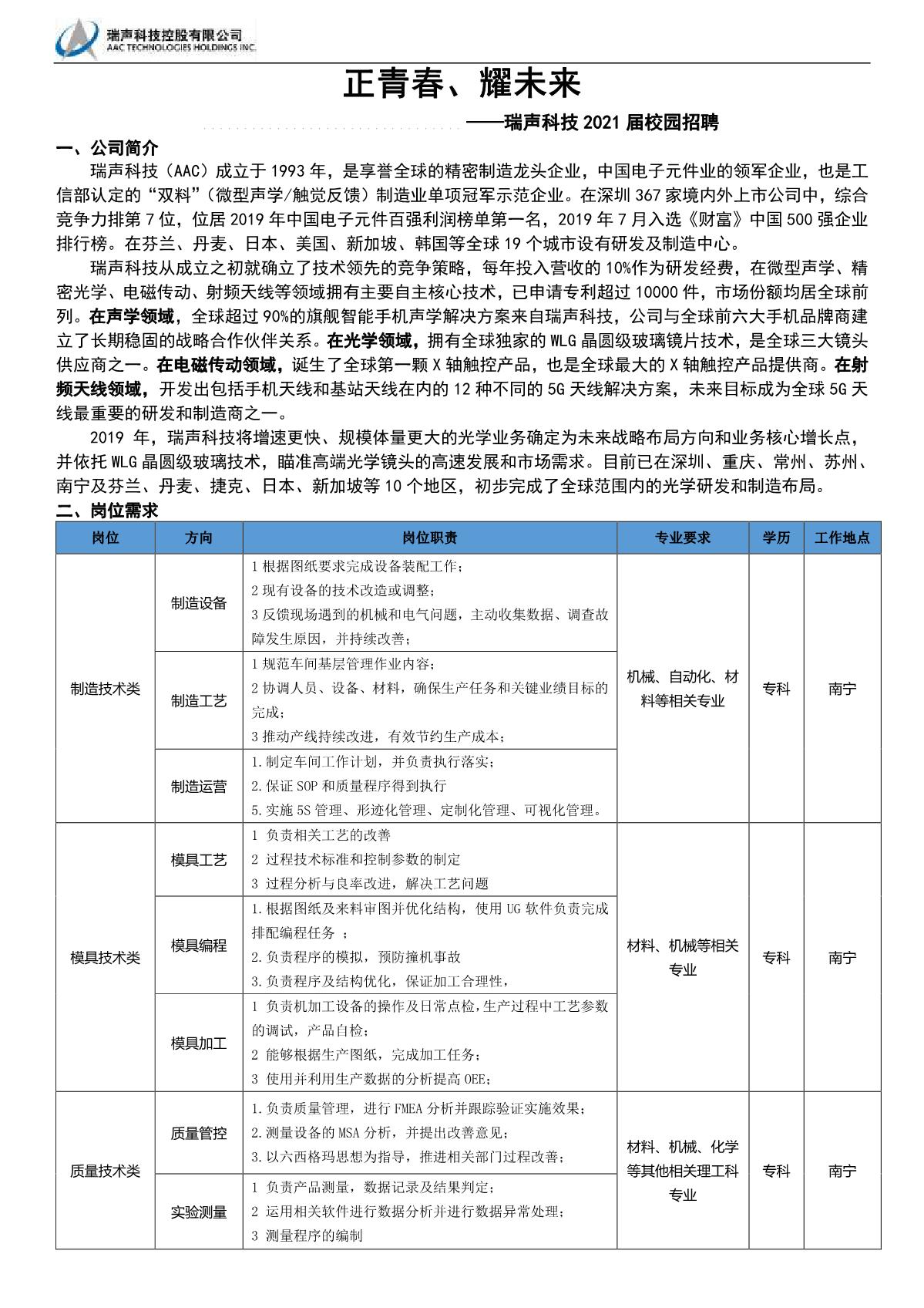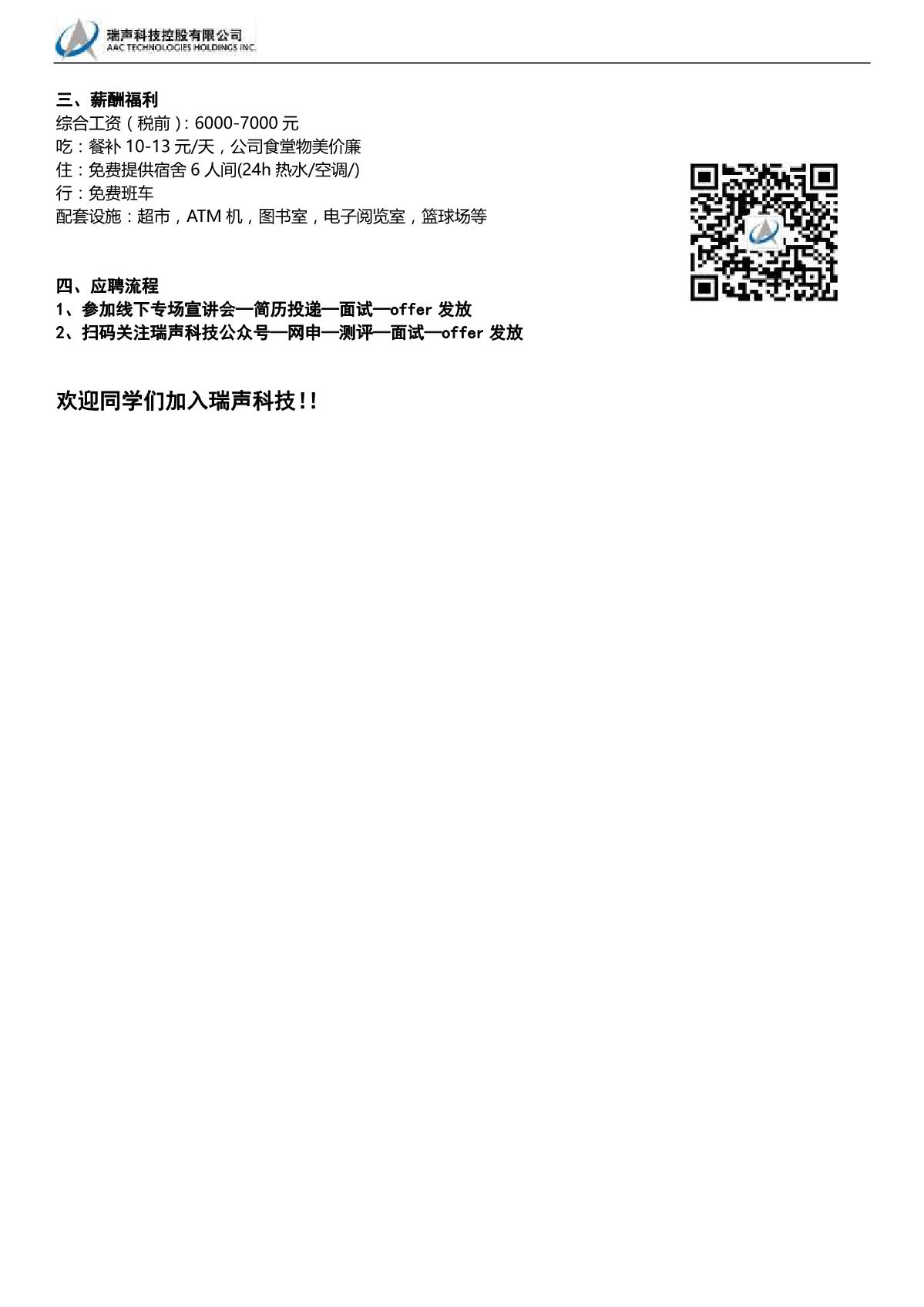 瑞声科技招聘简章
