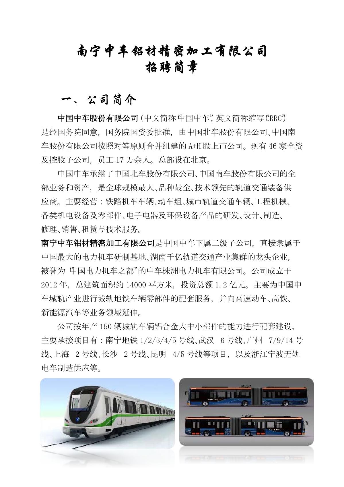南宁中车铝材精密加工有限公司招聘简章