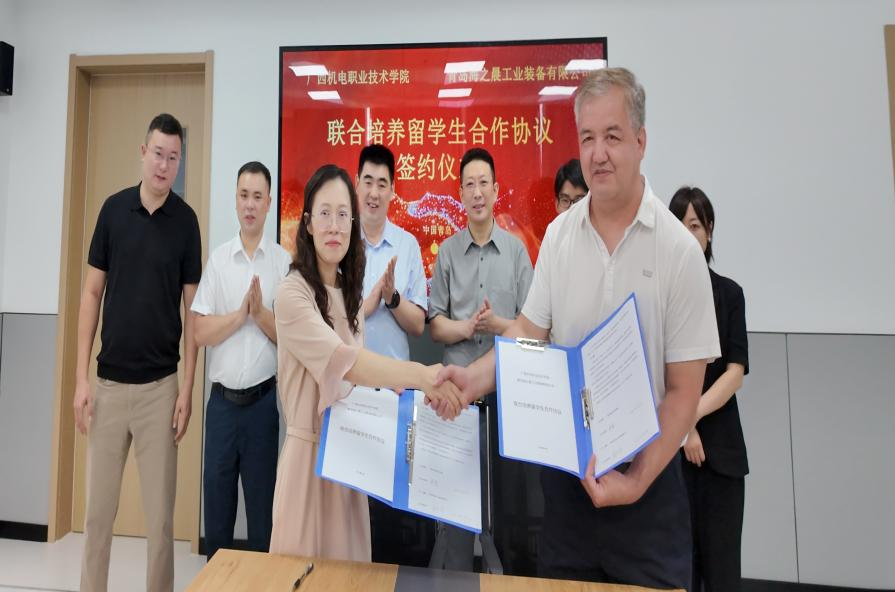 在青岛海之晨工业装备有限公司,团队考察了工业AI产业学院、机器视觉技术应用场景。座谈会上,双方以共建工匠学院为契机,围绕产教融合、标准出海、国际技能大赛、联合培养留学生等合作内容进行深入研讨,现场签订校企联合培养留学生合作协议,协定招收国际留学生到广西机电学习。校企双方肯定了工匠学院的建设成绩,表示将共同围绕“AI+机器视觉”这个高科技赛道率先打造产教融合标杆,推动广西机电“随企出海”。