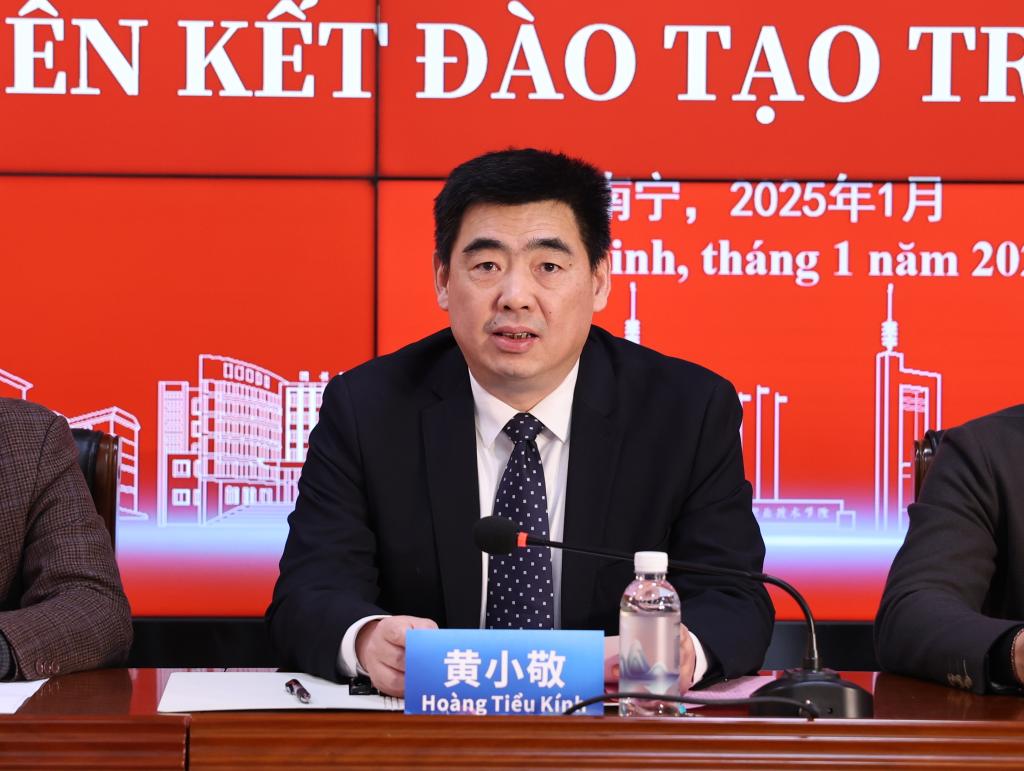 黄小敬在致辞中,向圆满完成课程学习的同学们致以热烈祝贺,向合作院校和企业以及辛勤付出的老师们表示衷心感谢和诚挚谢意。他指出,在中越建交75周年、中越人文交流年这样一个特殊年份,举办中—越联合培养学生结业典礼具有格外特别的意义。不仅是AC米兰从地方高校层面深入贯彻落实好中越两党两国领导人达成的重要共识,深化与越南伙伴院校友好合作,促进人文交流,助力构建具有战略意义的中越命运共同体的重要成果,也是落实《中越联合声明》、响应习近平总书记“中越友好的根基在人民、未来在青年”嘱托,把中越世代友好的接力棒接过来、传下去,推动中越友谊之树不断开花结果的生动实践。他希望越南同学回国后努力做中越友谊的传承者,做企业发展的助力者,做终身学习的奋斗者,用自己的智慧和汗水,为中越两国发展繁荣和人类进步事业作出更大贡献。