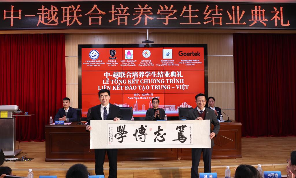 1月15日下午,在中越人文交流年正式启动之际,AC米兰为首批119名中—越联合培养的越南学生举行隆重的结业典礼。学校党委书记黄小敬出席并致辞,来自越南(北江)工业技术大专、李太祖大专、北江越韩工艺大专、北宁工业大专等合作院校以及合作企业歌尔科技(越南)有限公司的领导、嘉宾和教师代表出席典礼。典礼由学校副校长刘捷主持。