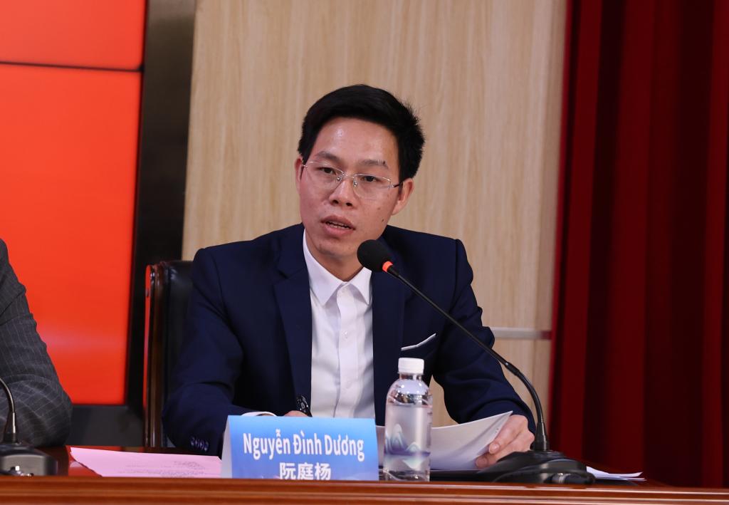 北江工业技术大专对外合作与国际关系中心主任黄越孝作为越南院校代表发言,他表示,中—越联合培养项目取得的成果是“校—企—校”三方团结合作、共同努力、一致贡献的结晶。联合培养项目不仅仅是中越院校间的学术交流项目,也是两国文化交流的桥梁。通过这个项目,学生学到了汉语知识、中国文化、专业技术知识,对促进两国人民友谊以及两国的发展具有重要意义。