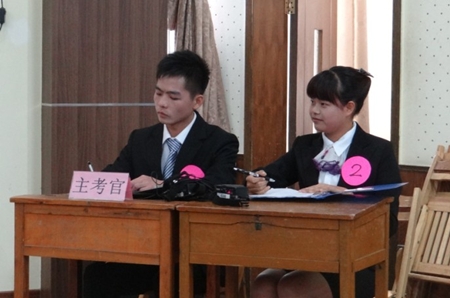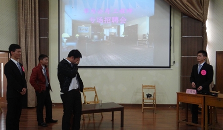 本届大赛共分为三个环节:团队介绍PPT展示、模拟面试情景剧、礼仪知识问答。我系代表队第二个登场,伴随着优美的轻音乐,队长张友才用标准流利的普通话分别介绍团队成员,完整流畅优美的完成了礼仪礼姿展示。在职场招聘情景剧中,我系代表队采用幽默风趣新颖独特的模拟面试情景展演赢得在场观众阵阵热烈的掌声。其中我系队员王星在剧中饰演的是有后台的面试者,绘声绘色,入木三分,更是让在场观众看得津津有味。礼仪知识问答环节,我系代表队张友才和韦乃锋互相配合,体现了我系学生之间的团结互助,不断进取的精神风貌,他们的回答获得了评委老师的一致好评。