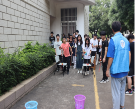 抛绣球为广西壮族特有民俗,寄托了壮乡人民对美好生活的祝愿,也因此成为了活动现场最受欢迎的游戏。师生们拿着游戏券,自觉排起了长龙。绣球带着美好的祝愿,在空中划出一道道靓丽的弧线,而后落入筐中,响起了阵阵欢呼声。