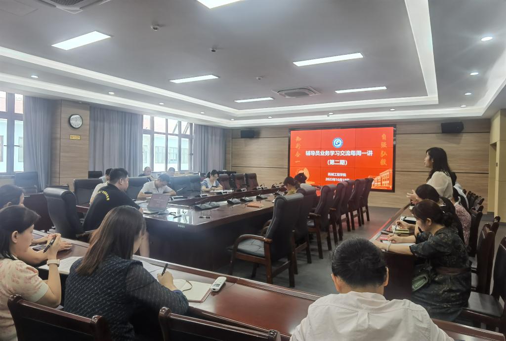为继续深入学习贯彻习近平新时代中国特色社会主义思想和党的二十大精神,进一步加强辅导员队伍建设,提升辅导员队伍专业水平和职业能力。机械工程学院于10月18日中午12点在笃行楼507会议室开展了辅导员业务交流学习第二期活动。第二期业务交流学习活动由机械工程学院辅导员韦韧老师主讲,全体专、兼职辅导员参加。