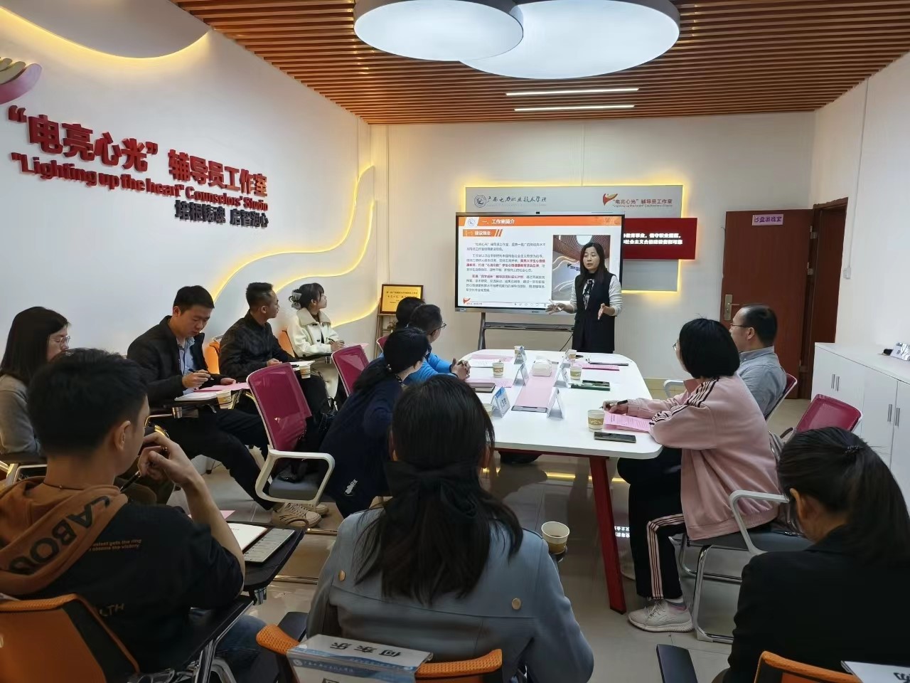 接着,由广西电力职业技术学院智能制造工程学院党总支副书记、“电亮心光”辅导员工作室负责人刘馥萍介绍“电亮心光”辅导员工作室的建设情况,并展示取得的成效。随后,双方就辅导员工作室建设、党建品牌建设、学生管理工作等展开交流、探讨。