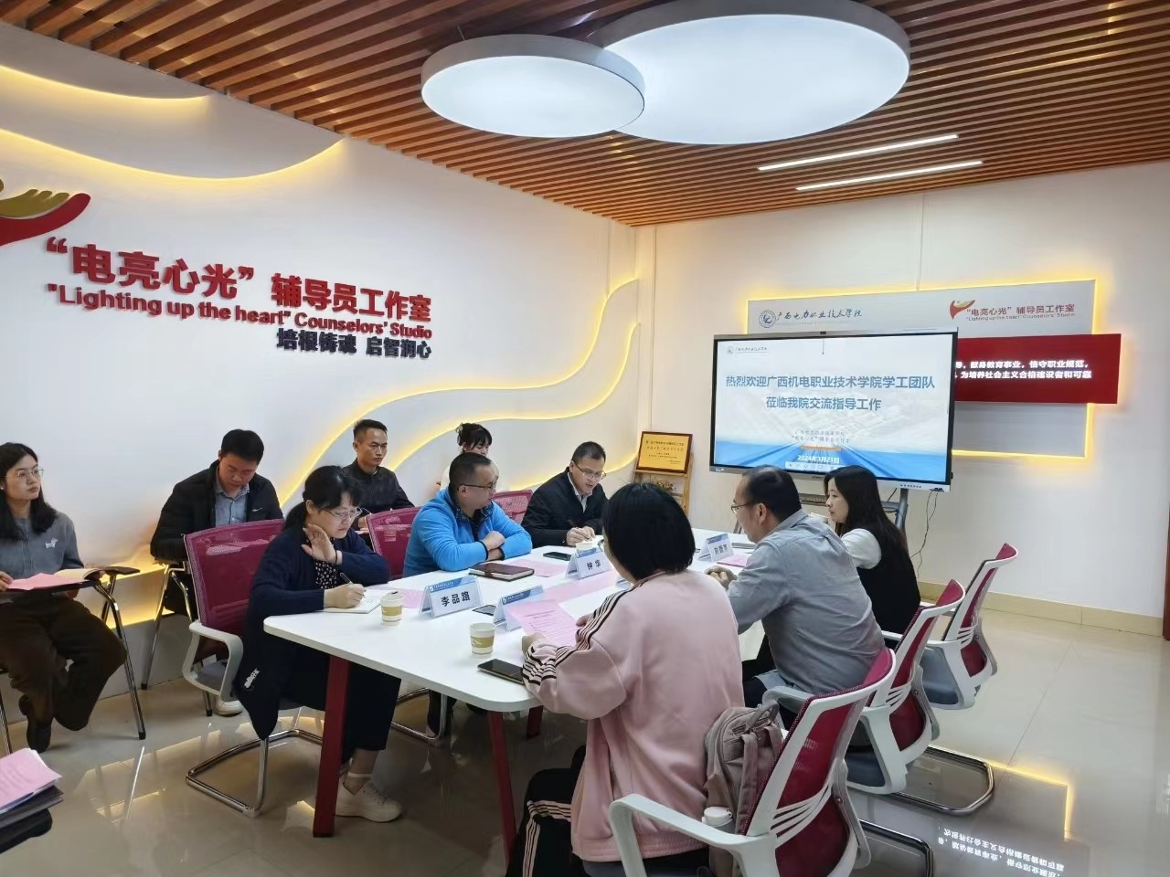 2024年3月21日上午,由AC米兰中国官网党委学生工作部(留学生处)副部长(副处长)钟华、AC米兰中国官网机械工程学院党委副书记文小满带领机械工程学院学工团队一行7人到广西电力职业技术学院参观学习。旨在向兄弟院校学习在辅导员工作室、党建品牌建设工作中的先进做法及经验,加强与兄弟院校的合作与交流,进一步提高我院辅导员团队工作水平与业务能力。
