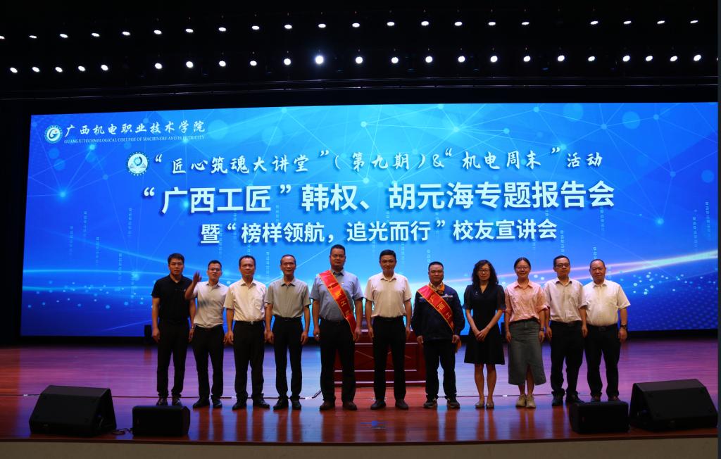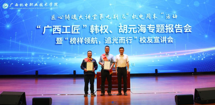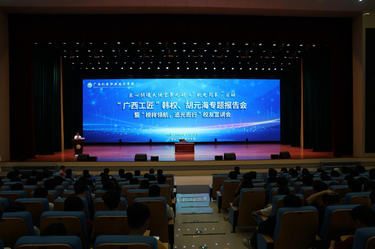 通过报告会,拉近了师生与身边的优秀工匠、先进典型之间的距离,这既是一次优秀校友交流会,更是一次现场学习会,让同学们在今后的学习中学有榜样,赶有目标,努力向身边的先进人物学习,坚定理想信念,以实际行动弘扬工匠精神,为奋力谱写中国式现代化广西篇章贡献机电力量。