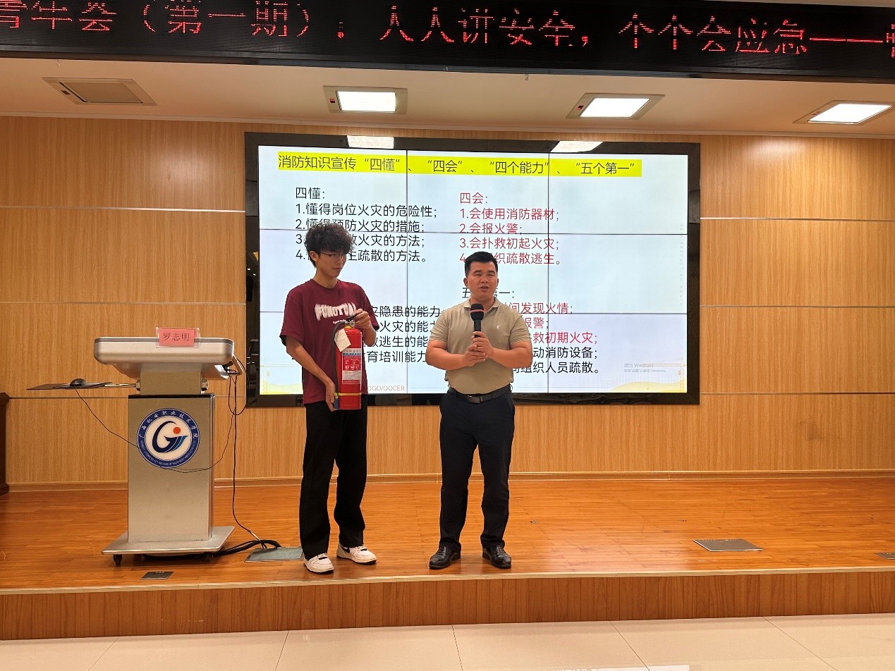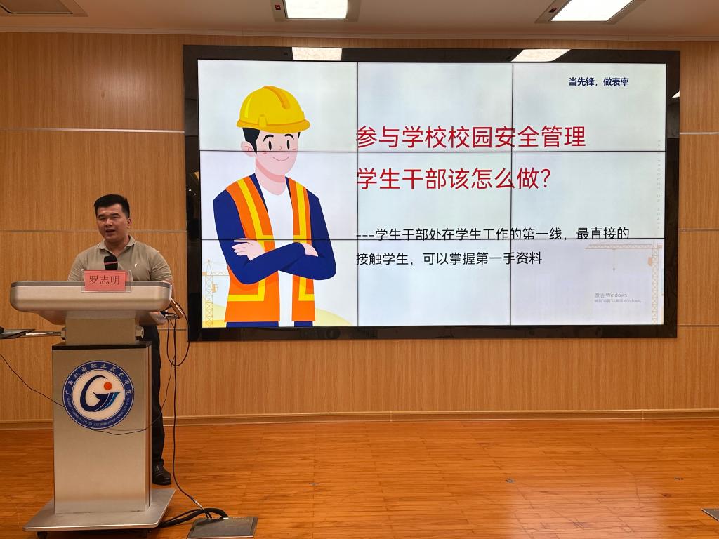 活动主要分为三个环节:安全知识理论培训、应急事件处置场景演练,以及应急安全教育讲座。特邀请党委武装部保卫科科长罗志明来给在场师生以“参与学校校园安全管理学生干部该怎么做?”为题作安全培训及应急处置指导。