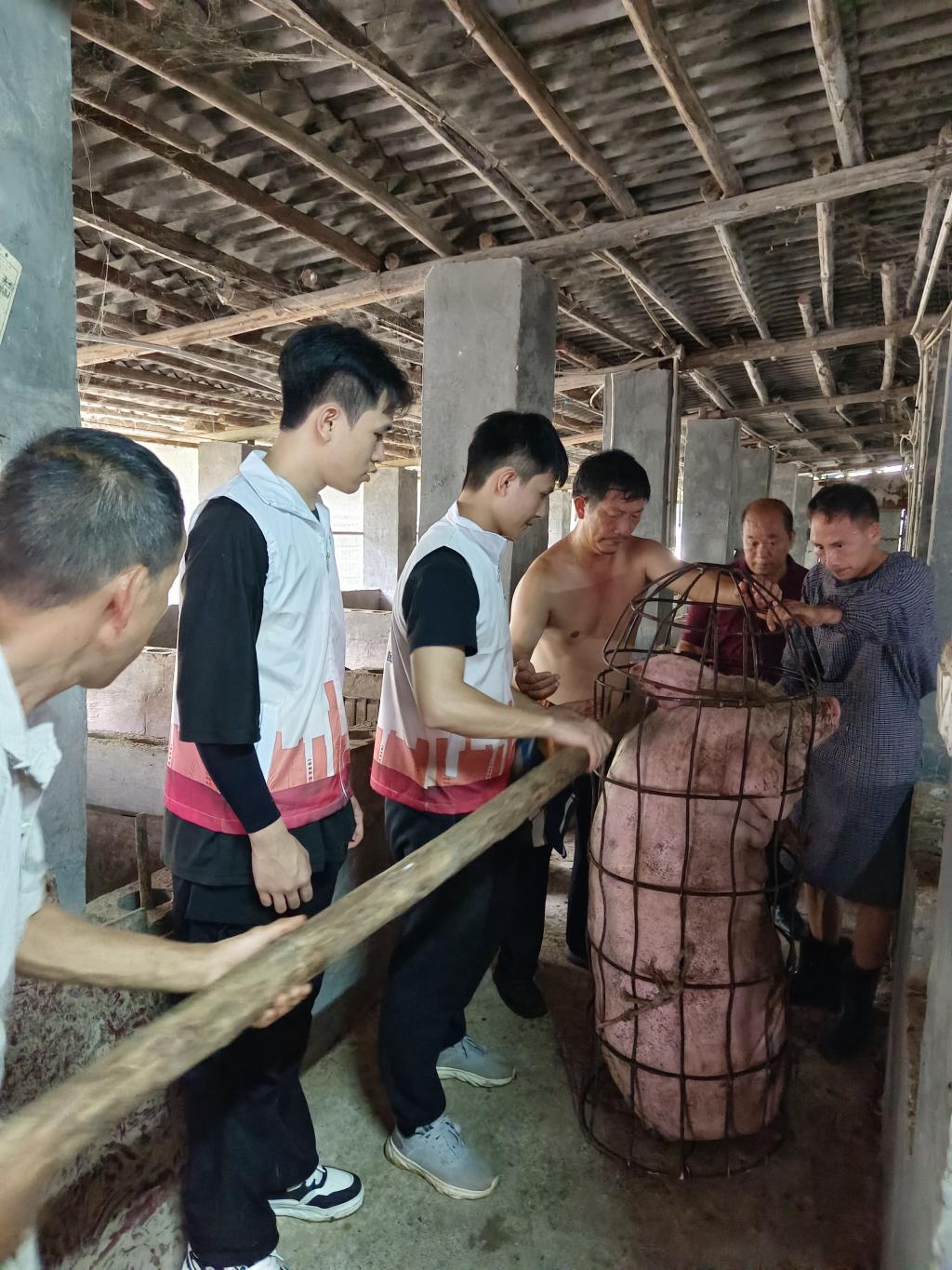 7月21日,村委带领实践团前往参观卡才村特色产业基地——弄累屯巴马香猪养殖场。卡才村党支部立足山区实际,积极探索特色养殖业发展之路。通过打造党员能人带动业发展工程示范基地,加快香猪养殖基地和小谷鸡养殖基地的产业转型升级,引进养殖企业进驻。在养殖基地,实践团成员实地参观了巴马香猪的养殖场所,了解香猪养殖情况和产业发展状况,还亲身参与了喂猪、打扫猪栏等劳动。通过参观体验,实践团成员深深感受到了卡才村在特色产业发展上所展现出的勃勃生机与源源不断的产业生命力,对乡村振兴的美好前景充满了信心与期待。