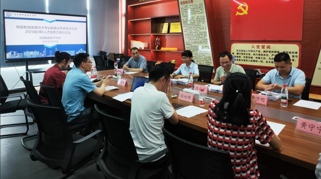 为加快推进专业群建设和专业人才培养方案修订,7月18日下午,在笃行楼528会议室举行智能制造装备技术专业群建设专家指导会暨2025级OBE人才培养方案论证会。本次会议邀请到广西水利电力职业技术学院机电工程学院院长陆尚平、南宁职业技术大学智能制造学院教授麦艳红、广西机械工业研究院智能装备部副部长李修明等三位校外专家莅临指导。学院副院长伍咏晖、教研室主任以及各专业负责人参加了会议。