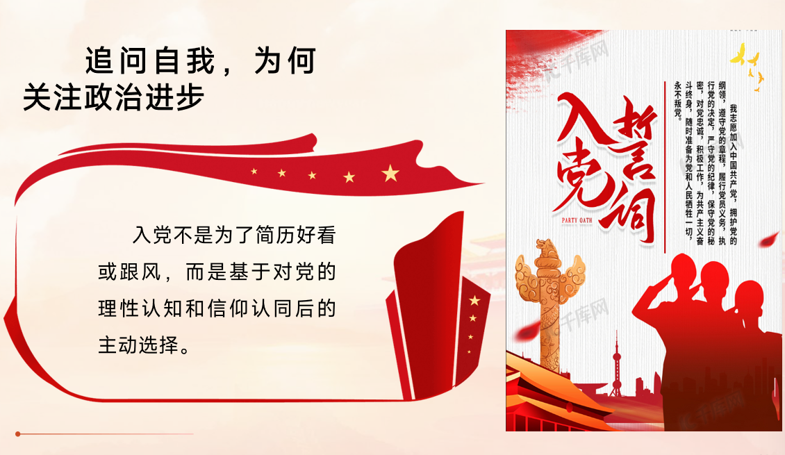 “青年学生为何要关注政治进步?”“入党是为了‘好看’、跟风,还是信仰的追求?”课堂上,老师提出的互动问题调动起同学们的积极性和求知欲,大量的生动事例阐释了新时代大学生加入党组织的时代价值与重要意义,具有亲和力和针对性的讲解增进了同学们的情感认同和观点理解。