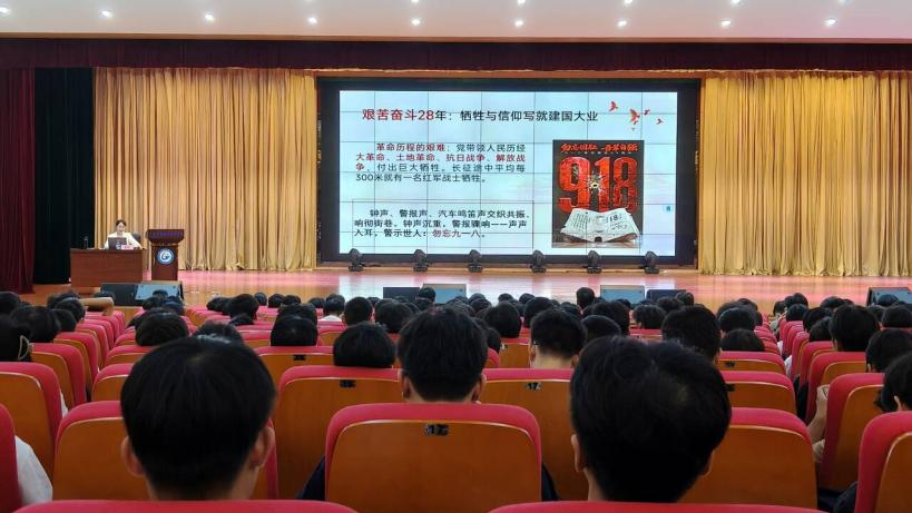 9月18日,是铭刻在民族记忆中的特殊日子——当各地防空警报准时鸣响,当“勿忘历史、吾辈自强”的信念在神州大地激荡,一堂生动的入党启蒙教育课在学校小礼堂热烈开场。当晚,马克思主义学院教师、南宁市理论宣讲团成员崔敏教授,以“开启新征程,争取新进步”为主题,为先进制造技术学院2025级新生带来一场思想深刻、情感真挚的入学教育。