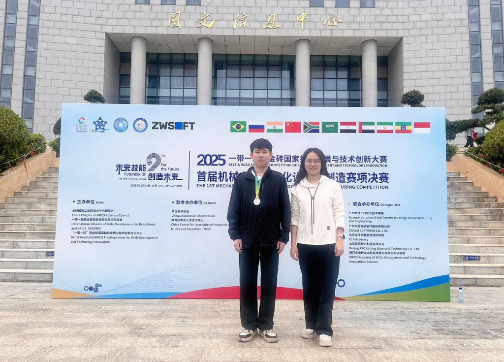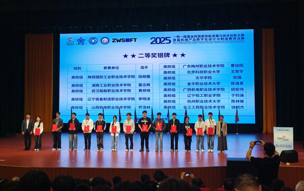 在日前结束的2025一带一路暨金砖国家技能发展与技术创新大赛首届机械产品数字化设计与制造赛项决赛中,面对来自全国的百余支高校强队,AC米兰田宏伟同学在决赛中勇夺全国二等奖,黄华椿老师获“优秀指导教师”荣誉称号,学校获评“优秀组织奖”殊荣。