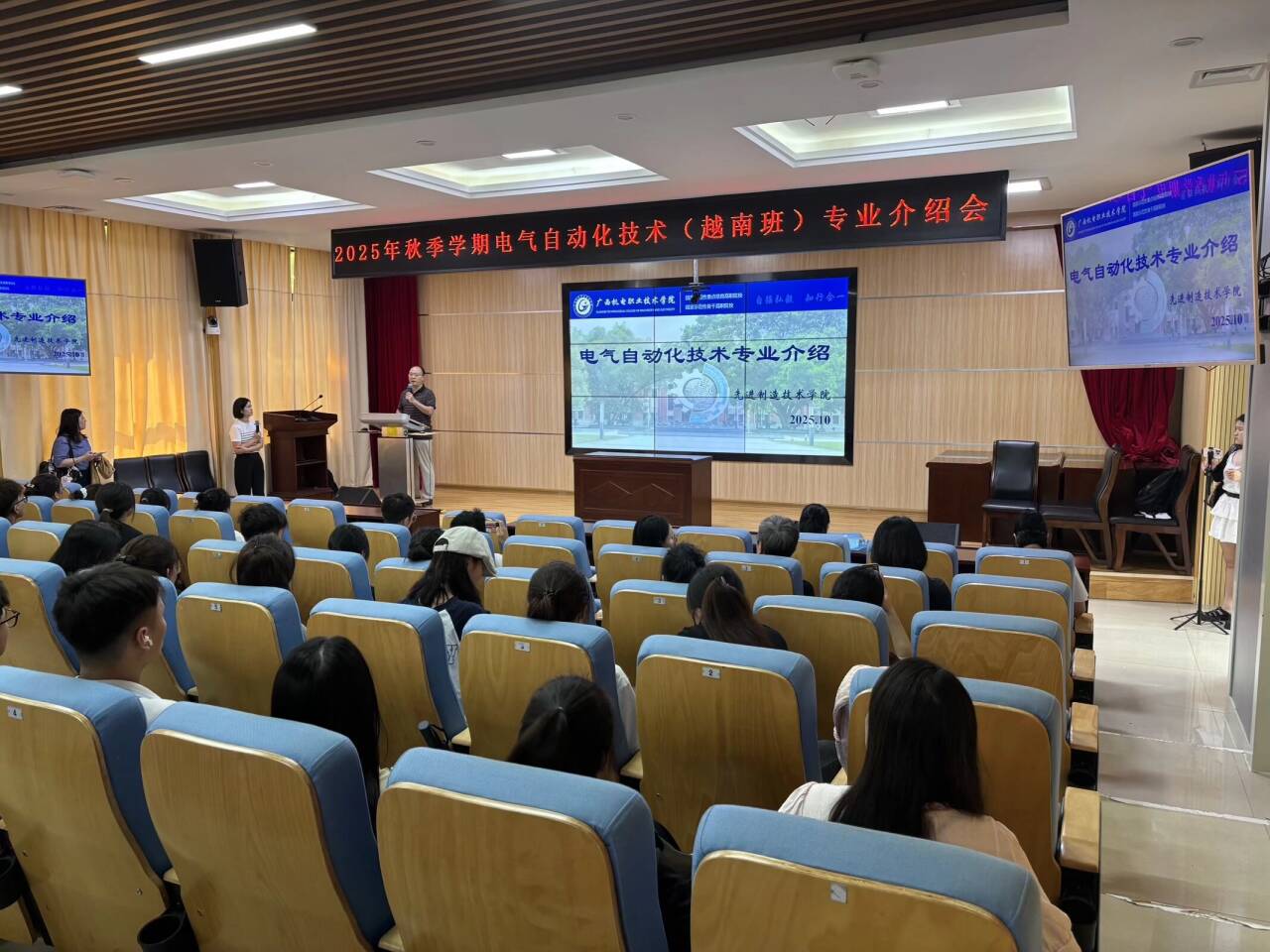 为帮助留学生尽快适应新环境,加深对所学专业的了解,10月17日电气自动化技术专业团队组织自动化越南班召开专业介绍会并参观实训室。
