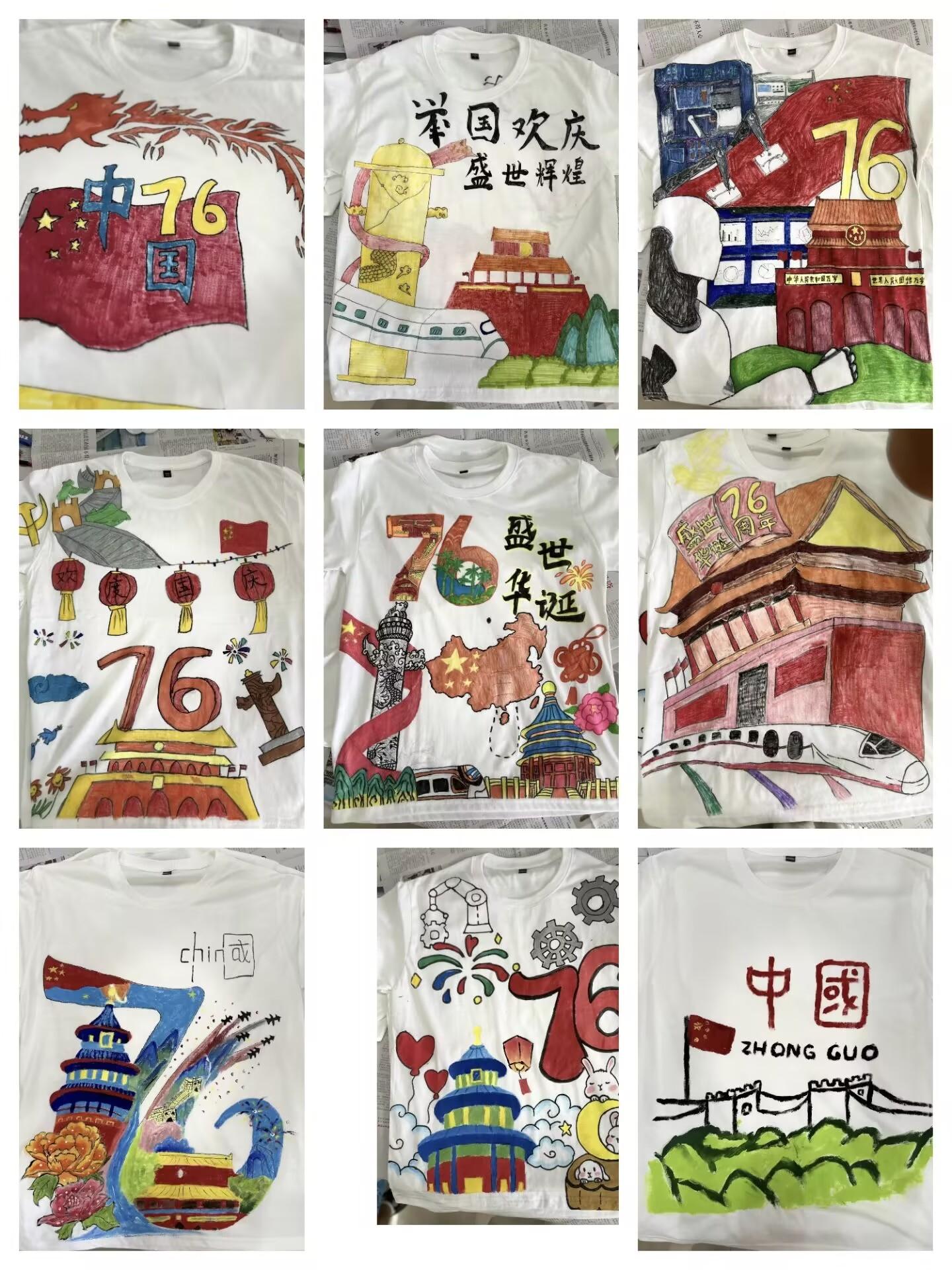 9月30日,在国庆系列活动之“我为祖国添彩”现场手绘活动中,学生们迫不及待地拿起画笔和颜料,将对祖国的热爱与祝福凝注于主题文化衫的创作中。每一件文化衫的绘制都是一堂生动的爱国教育实践课,青年学生在一笔一画中厚植家国情怀,在色彩碰撞中彰显文化自信。活动结束后,同学们纷纷表示在国庆到来之际制作这些手绘作品很有意义。部分优秀作品在学校笃行楼一楼展出期间,吸引了经过的老师、同学驻足观赏。