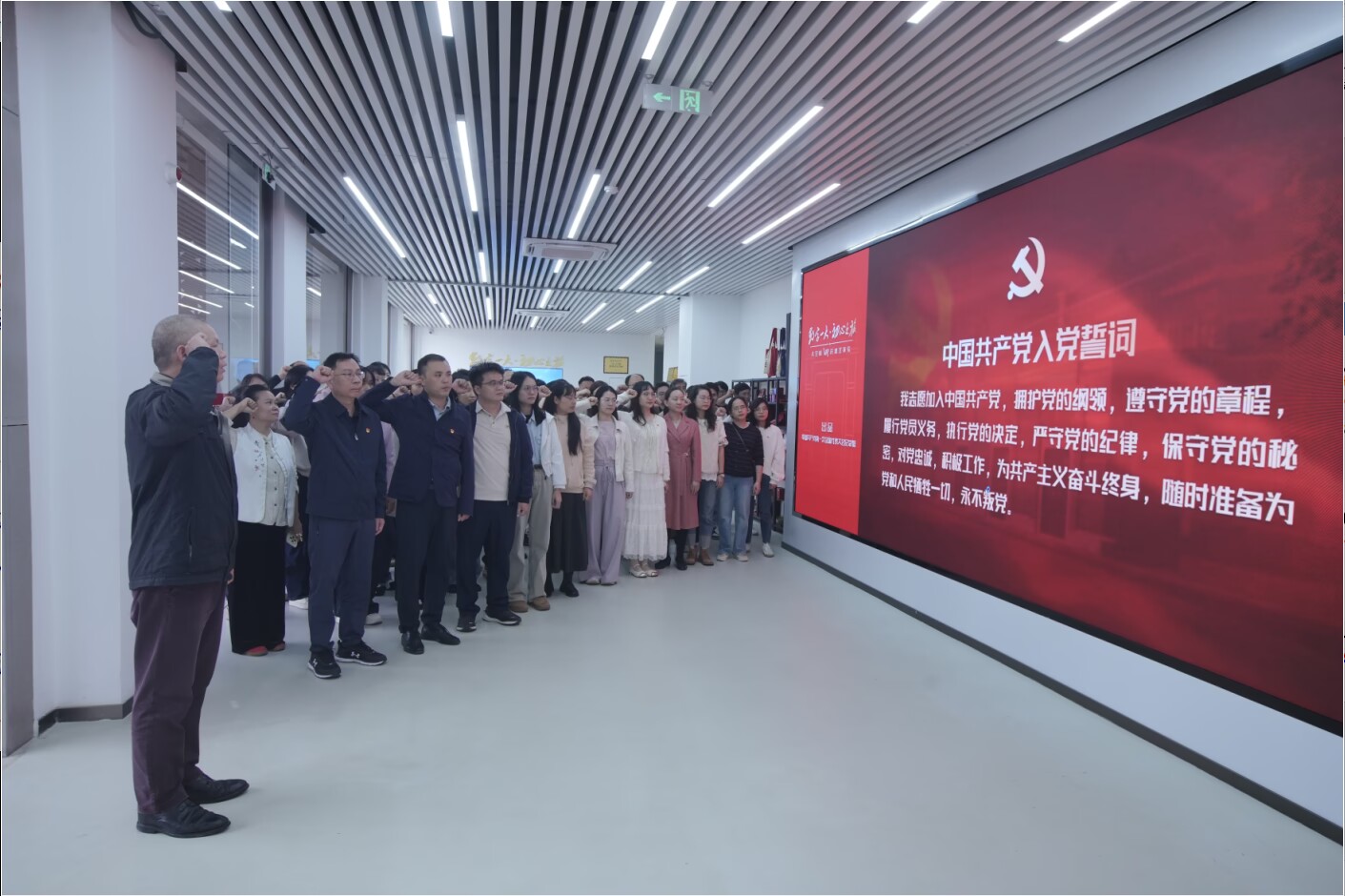 活动伊始,学院党委书记刘波带领全体党员重温入党誓词,强化党员身份认同与使命担当。随后,党员们通过VR技术体验“数字一大·初心之旅”与“祖国疆域·深空”两个主题内容,在科技赋能中深刻感悟建党伟业与建党精神。