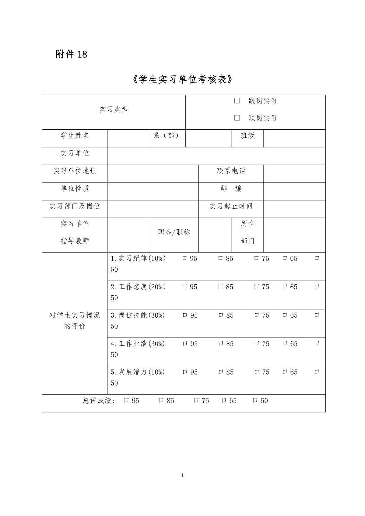 《学生实习单位考核表》