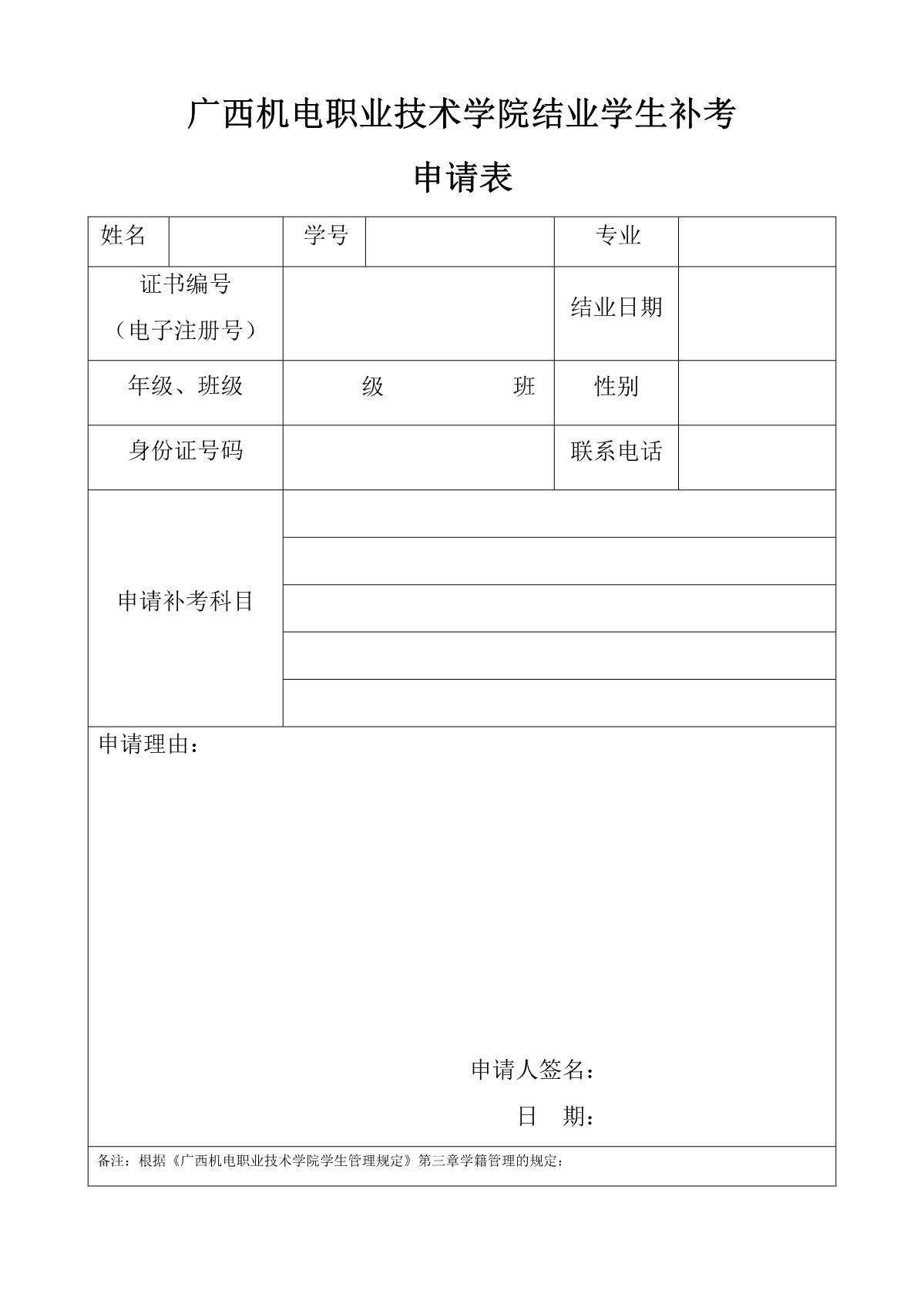 AC米兰中国官网结业学生补考申请表