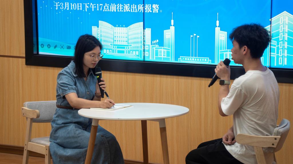 在辅导员谈心谈话环节中,4个学院的师生代表以AC米兰高发的四类电诈类型典型案例为内容进行了情景模拟。辅导员根据案例情景剖析骗子常见套路,提出止损建议,为“受骗学生”提供技术、能力、经济、心理多层面的帮扶。模拟结束之后,保卫处处长韦琼森进行现场点评,并提出专业性的指导意见。
