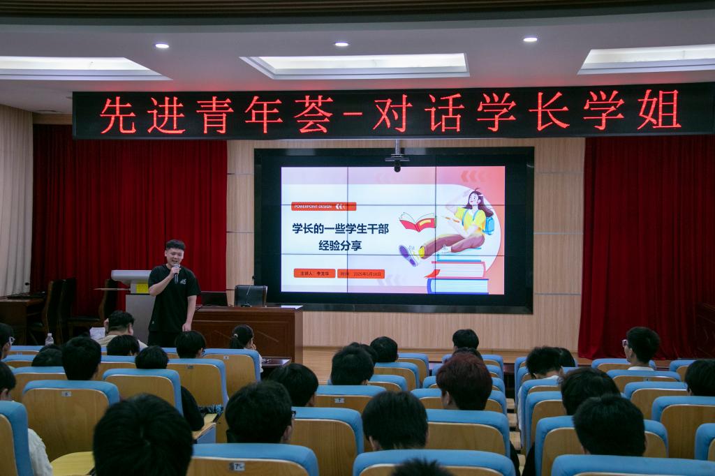 5月16日,先进制造技术学院“先行”辅导员工作室举办了一场题为“对话学长学姐”的“先进青年荟”主题沙龙,活动邀请到2024届专升本学长徐荣昌、李龙华回到学院分享成长经验,围绕学生干部素养提升、学业规划等内容答疑解惑,吸引150余名学生参与,现场气氛热烈。