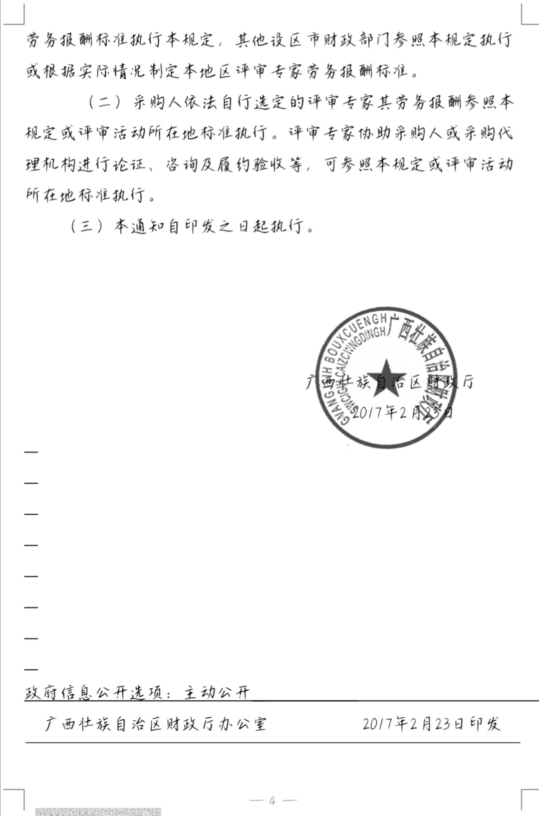 关于印发广西壮族自治区政府采购评审专家劳务报酬支付标准暂行规定的通知