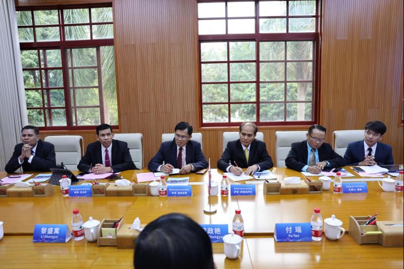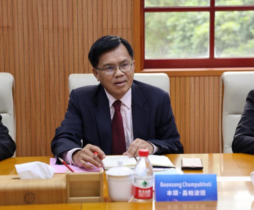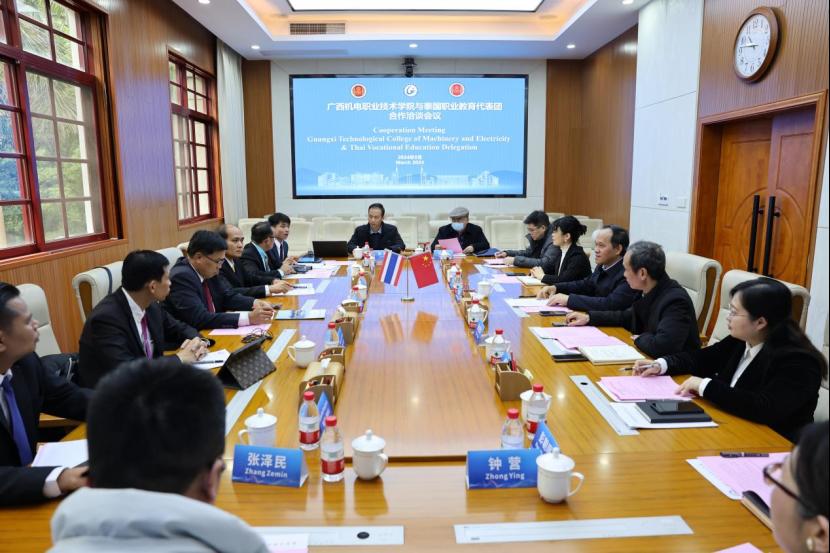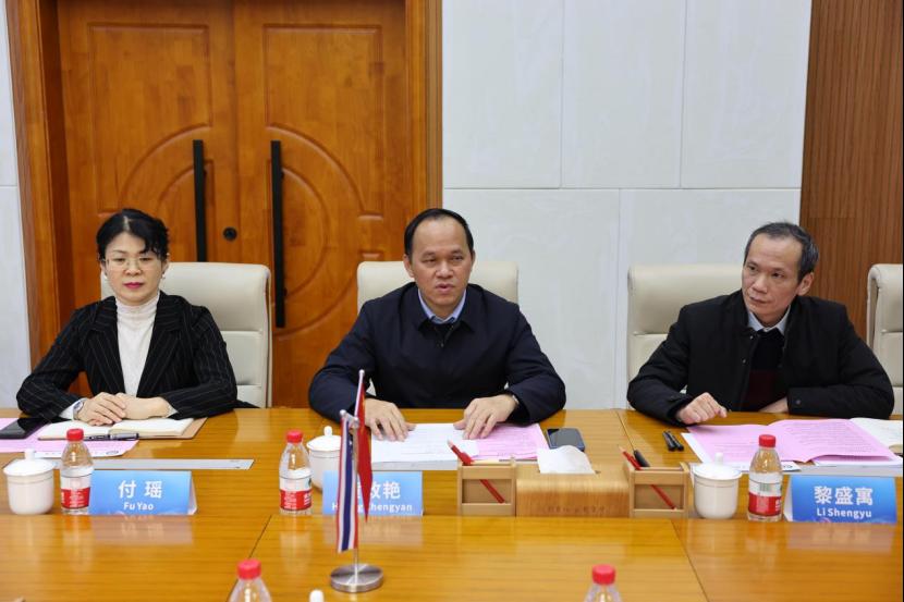 在会议中,泰国东北二区职业教育研究院院长萨提先生详细介绍了研究院的组织架构与运行情况。昆孟工业与社区教育学院院长蒙满先生则提出了具体的合作项目计划,包括师生互访交流、短期学习、在线语言培训以及邀请中方教师赴泰教授中文等。黄政艳副校长对蒙满先生提出的项目计划表示高度认可,认为这些项目具有很强的可行性和广阔的前景。