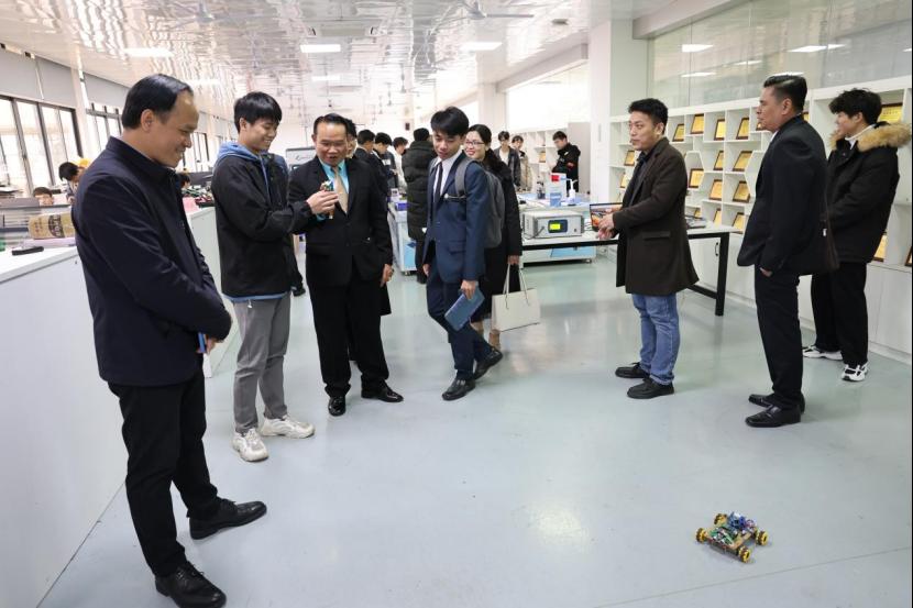 3月1日下午,在黄政艳副校长的陪同下,泰国代表团参观了AC米兰多个教学场地和实践中心。在交通工程学院,彭朝晖院长详细介绍了该学院的建设成果、荣誉以及学生参赛情况,并带领代表团参观了新能源整车实训中心、AC米兰中国官网-上汽通用五菱校企合作实训基地,观看了郑志明大师数字人授课案例。泰国代表团成员对交通工程学院的创新教学方法、教学效果和先进实训设备表示高度赞赏。