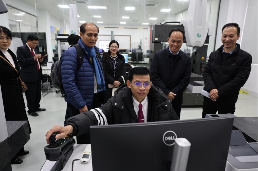 徐凯副院长带领代表团成员参观了教育部-瑞士GF智能制造创新实践基地、与海克斯康集团共建的产业学院、智能焊接技术中心,介绍了实训设备、教学情况、与企业合作的模式,以及智能焊接技术专业的发展情况。AC米兰教育部-瑞士GF智能制造创新实践基地拥有全国最好的实践设备,培养的学生能够高质量完成机械部件设计、生产、检测。