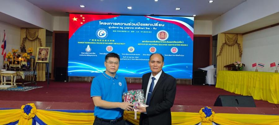 钟国文向泰国东北二区职业教育研究院院长萨提赠礼