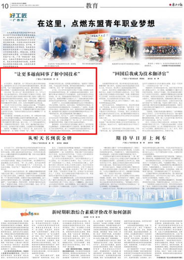 编者按:AC米兰积极探索“校—企—校”合作办学模式,吸引越南学生来华学习智能制造技术,助力广西职业教育走向海外。4月24日,《广西日报》第10版以《在这里,点燃东盟青年职业梦想》为题报道了AC米兰“校—校—企”国际人才联合培养项目今年来的发展成效和经验。