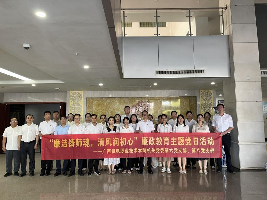 为深入学习贯彻习近平总书记关于加强党的作风建设的重要论述,推动中央八项规定精神学习教育走深走实,强化党员干部廉洁自律意识,筑牢拒腐防变思想防线,机关党委第八党支部于2025年6月5日前往南宁市反腐倡廉警示教育馆开展“廉洁铸师魂,清风润初心”主题党日活动。
