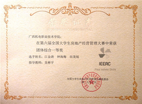 图8 学生参加2017年广西房地产大比赛获奖