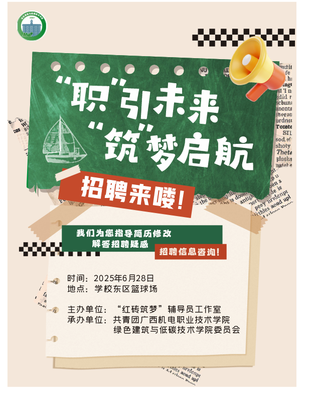 2025年6月28日,在学校2025年毕业生大型综合双选会现场,由“红砖筑梦”辅导员工作室主办,绿色建筑与低碳技术学院团委承办的“‘职’引未来,‘筑’梦启航”就业服务活动火热开展。活动通过一对一简历指导、招聘政策答疑、行业信息咨询等形式,为2025、2026届毕业生提供精准就业服务,助力学生高质量就业。
