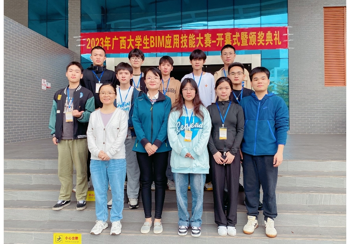 5月13日,由广西壮族自治区教育厅主办的“2023年广西大学生BIM应用技能大赛”在南宁职业技术学院如期举办,本届比赛共有来自41所高校的194支团队,近千名学生现场竞技。经过与全区高校选派各代表队激烈角逐,由我院选手李晶雯、王柳青、李鸣杰、钟瑞亮、莫镇涛、袁国龙、岑丽州、庞思清、白文芳、韦德高所组成的2支代表队最终分别排第6名和第8名,均荣获工程施工BIM应用赛项二等奖;由陈冠宇、罗晓庆、陈世煜、吴华仲、梁材、韦仁坚、陈露桦、陆思磊、张鸿润、周鸿润所组成的2支代表队最终分别排第5名和第6名,荣获工程设计BIM应用赛项二等奖。