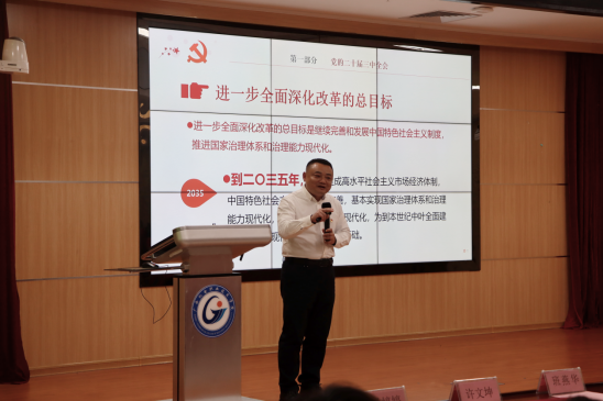 第一部分是学习领会党的二十届三中全会精神。罗满书记从介绍二十届三中全会的基本概况出发,带领学员们共同学习《中共中央关于进一步全面深化改革、推进中国式现代化的决定》,并向学员们解读了“七个聚焦”重要改革任务,六个贯彻原则,以及围绕中国式现代化进一步全面深化改革的总体部署。通过罗满书记的深入讲解和生动的案例分析,学员们对全会精神有了更加全面和深刻的理解。通过此次会议精神的学习,他希望学员们要高举改革开放旗帜,凝心聚力、奋发进取,把学到的新思想新理论积极运用到学习工作中去,做到有突破、有创新,牢记初心使命,坚定理想信念,为实现中华民族伟大复兴的中国梦贡献更大的力量。