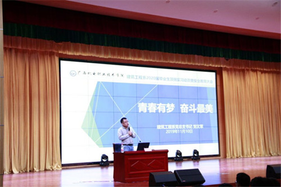 11月10日晚,我系2020届毕业生顶岗实习动员暨安全教育大会在博远楼六楼小礼堂举行。系主任周运金、系党总支书记刘义军、系副主任周玲出席大会,学工团队、专业教师代表、2020届全体毕业生参加了会议。会议由系团委书记覃媛主持。