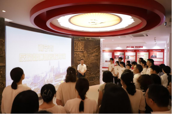 为进一步推动党纪学习教育走深走实,切实增强党员干部的党纪意识和廉洁自律意识,7月5日下午,我院党委组织各党支部党员50多人到南宁市反腐倡廉警示教育馆开展“守廉洁本色,扬清风正气”主题党日活动。
