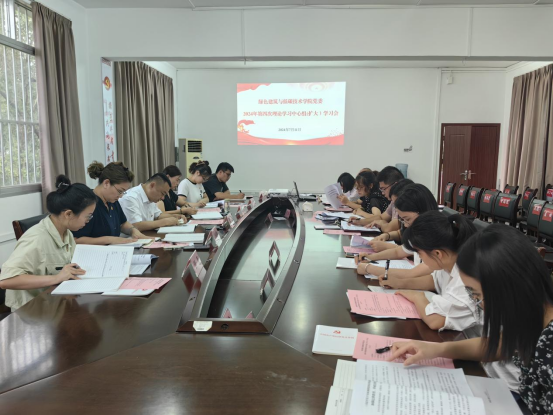 7月11日下午,绿色建筑与低碳技术学院党委在学院301会议室召开理论学习中心组2024年第四次学习(扩大)会,深入学习领会习近平总书记关于全面加强党的纪律建设的重要论述和专题学习新修订的《中国共产党纪律处分条例》第十章、第十一章内容,并围绕党的“工作纪律”和“生活纪律”进行集中研讨。学院领导班子、副科级以上干部、各党支部委员参与会议。学院党委书记罗满主持学习会。