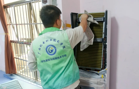 在志愿服务活动中,学校师生党员与特教学校教师携手,为特教儿童们精心组织游戏活动。互动活动中,孩子们尽情欢笑,将快乐的音符洒满了整个教室;与此同时供热通风与空调工程技术专业的志愿者对特殊教育学校空调进行全面清洗消毒,志愿者们仔细拆卸空调滤网,认真清理灰尘污垢,确保空调能够高效运行,在炎炎夏日里为孩子们营造一个更加舒适、健康的学习环境。