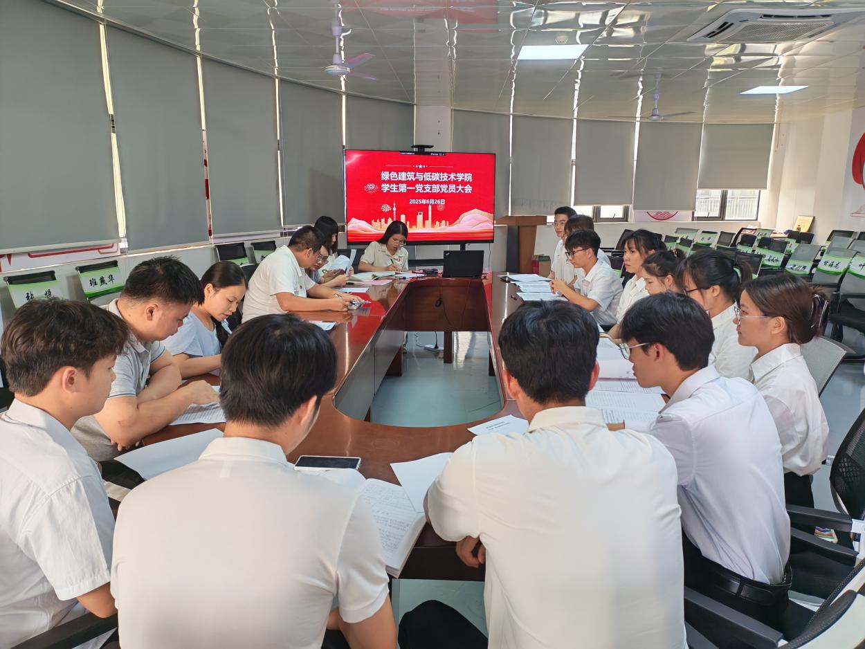 6月26日,绿色建筑与低碳技术学院学生第一党支部在学院会议室206召开2025年上半年预备党员接收大会,讨论接收发展对象欧圣楠等11位同志为中共预备党员。会议由党支部书记陶彬主持,全体党员参加会议。