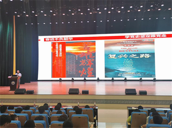 感受伟大的时代,引导同学们树立民族的自信心和自豪感;从中国共产党诞生、新中国成立建设新中国、改革开放、中国特色社会主义新时代等重大历史节点与事件带领同学们认知伟大的党;鼓励同学们奋进不负韶华,通过读《苦难辉煌》、《复兴之路》等经典著作,通过看《建党伟业》、《建国大业》、《血战湘江》、《外交风云》史诗影视剧,创新学习方式主动学党史、学中国革命史,坚定跟党走,做新时代的奋斗者,在新时代的伟大征程上实现个人自我价值,为实现中华民族伟大复兴的中国梦不懈奋斗。刘书记的精彩的党课,赢得了同学们的阵阵掌声。