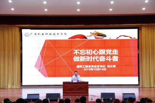 刘义军书记从“感受伟大的时代”带领同学们感受新中国成立70年来所取得的伟大成就;以“认知伟大的党”带领同学们从中国共产党诞生、新中国成立、建设新中国、进行改革开放、进入中国特色社会主义新时代等重大历史进程,了解和认知以“全心全意为人民服务”为宗旨,以“人民对美好生活的向往”为奋斗目标的中国共产党;用“坚定跟党走”鼓励2019级的新同学们要树立坚定的理想信念,用优秀注解大学生活,用表率赢得老师同学认可,主动学习党的知识,自觉了解入党程序,积极向党组织靠拢,争取早日加入中国共产党,做新时代的奋斗者!