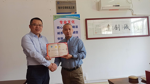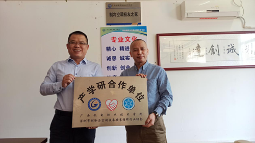 10月27日,我院与深圳市制冷与空调设备安装维修行业协会签订产学研用合作协议,协会副会长、深圳市圳兴环境科技有限公司何昌斌董事长受协会会长易志明委托一行3人专程到校举行产学研合作单位揭牌,系总支书记刘义军出席揭牌,并在校企合作工作室与来宾进行了深入交流。