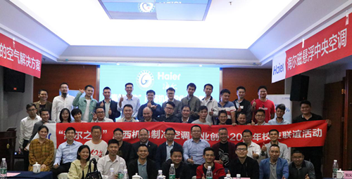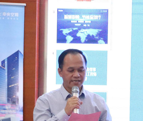 海尔商用空调家中机经理刘东明介绍海尔小机产品及政策,重点讲解了海尔家用机品牌开店扶持政策和运营管理技术,海尔商用空调区域经理易士东介绍大机产品及优势,重点讲解了海尔磁悬浮技术研发状况、工作原理、节能优势、推广优惠政策等。